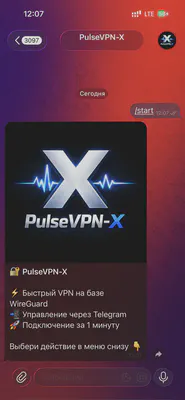 🔐 PulseVPN-X — VPN via Telegram in 1 Minute